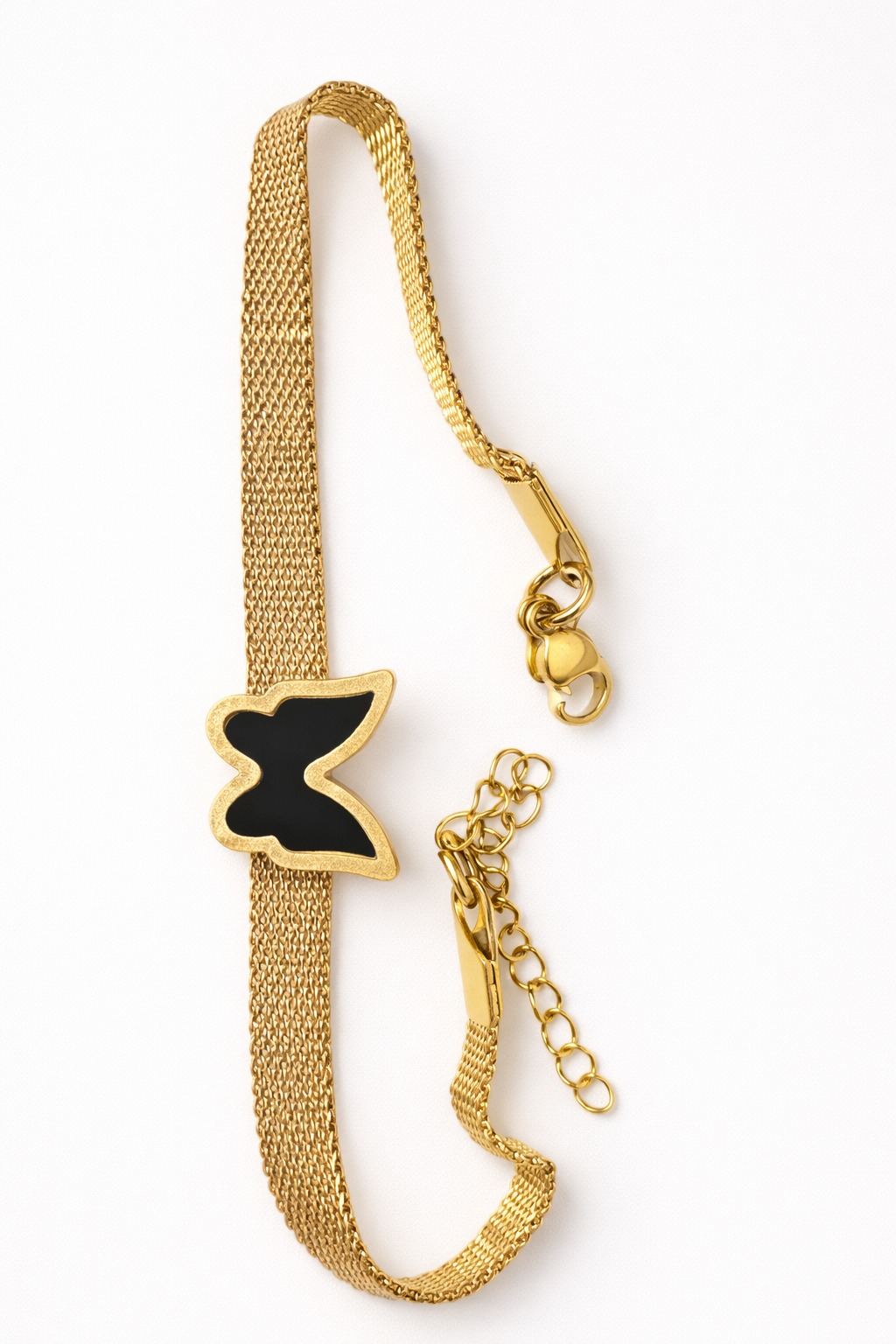 Butterfly charm black enamel detailing ke saath design kiya gaya hai jo grace aur elegance ko represent karta hai. Gold-plated stainless steel chain strong, durable aur skin-friendly hai.